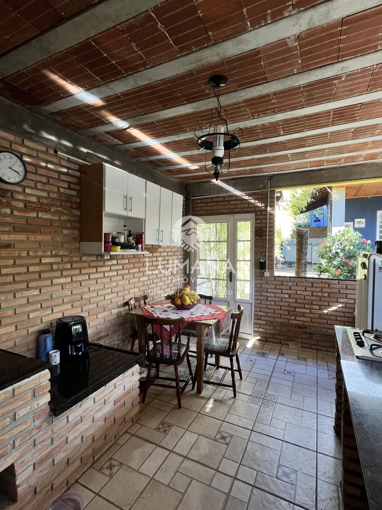 Espaço gourmet com fogão a lenha, linda área verde com paisagismo e ducha. Ambiente agradável e acolhedor. Terreno todo murado, frente com jardim e 01 vaga de garagem. Fundos possui anexo com 01 quarto suíte, ideal para hospedes ou escritório home office.