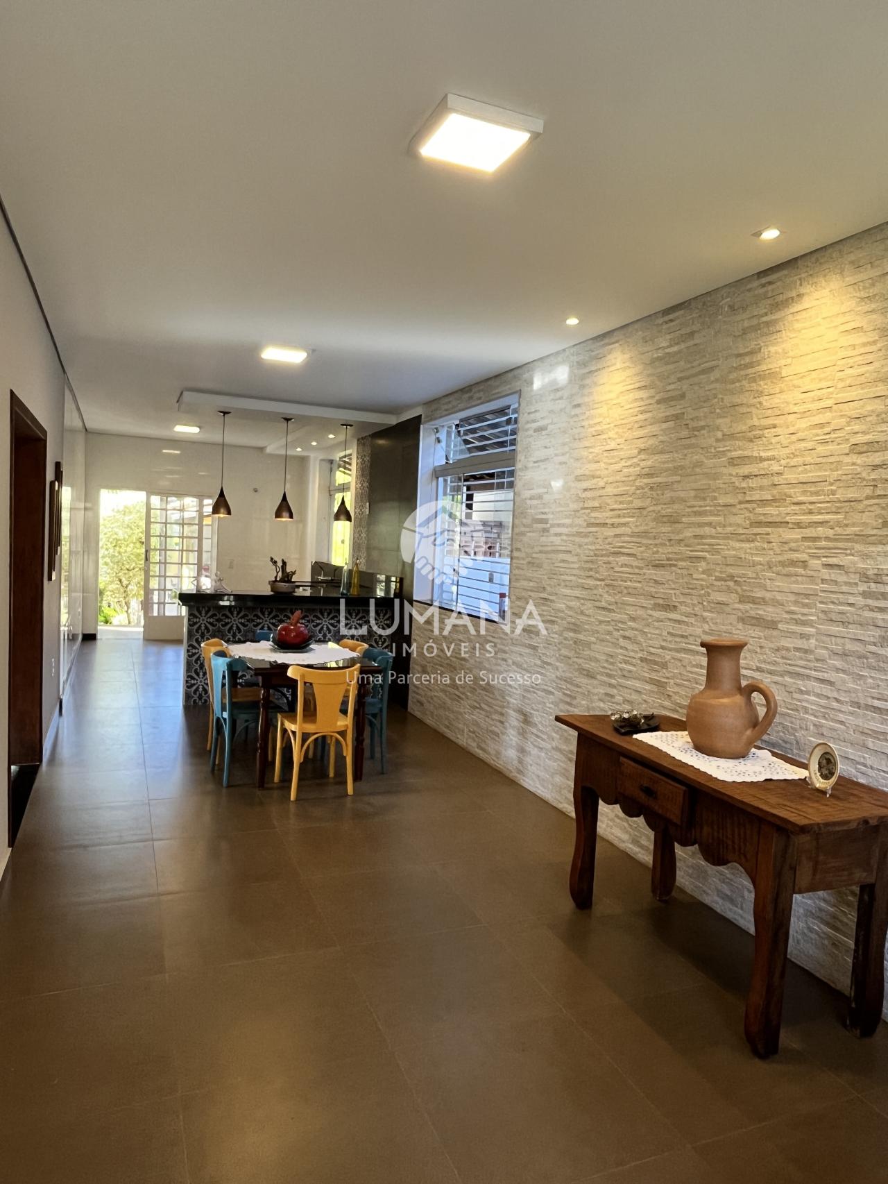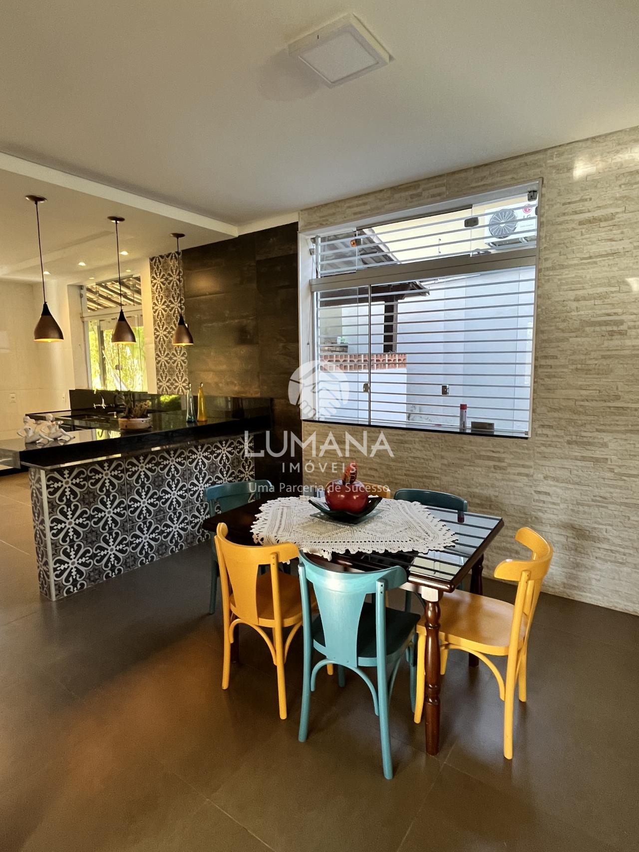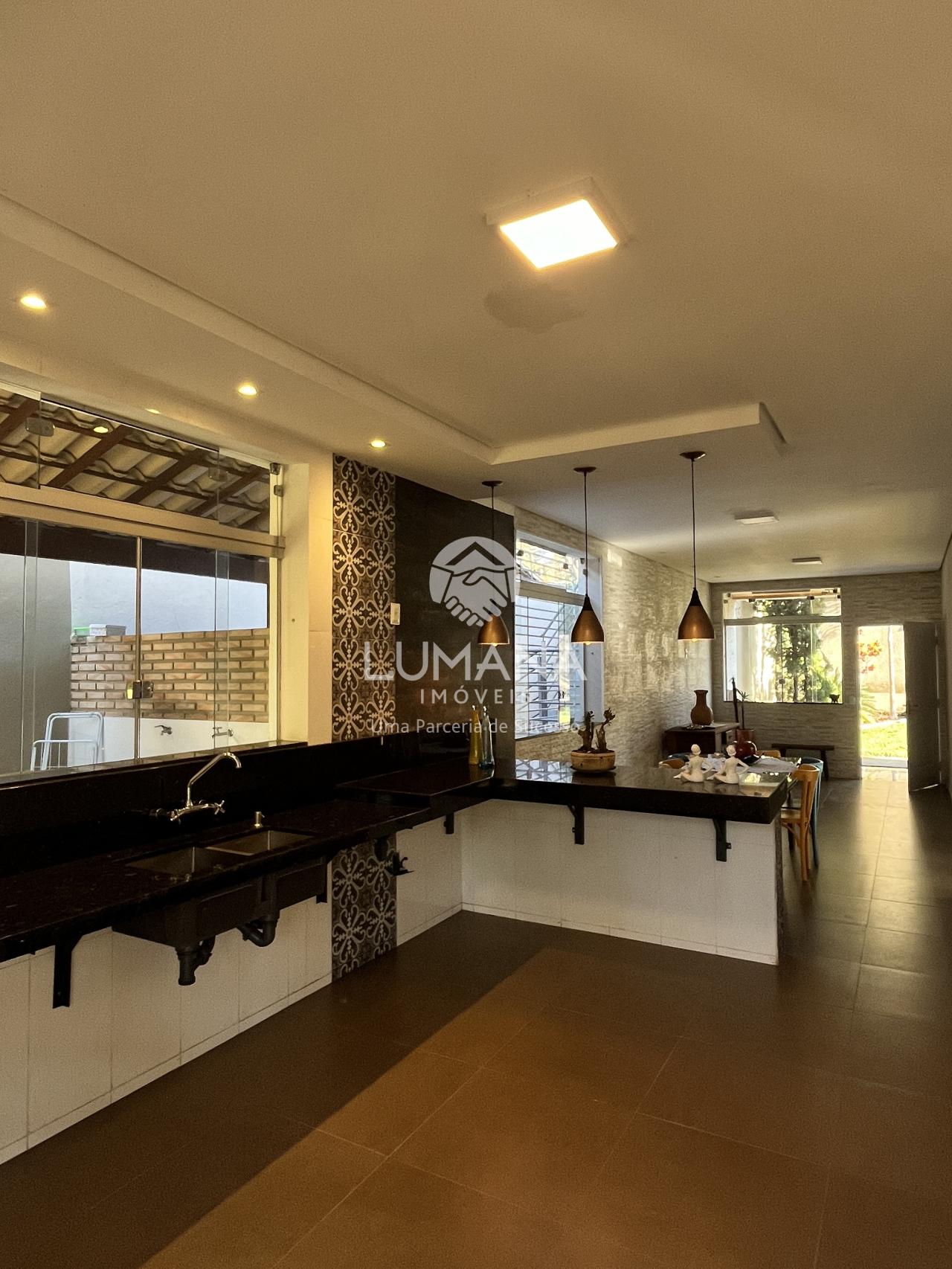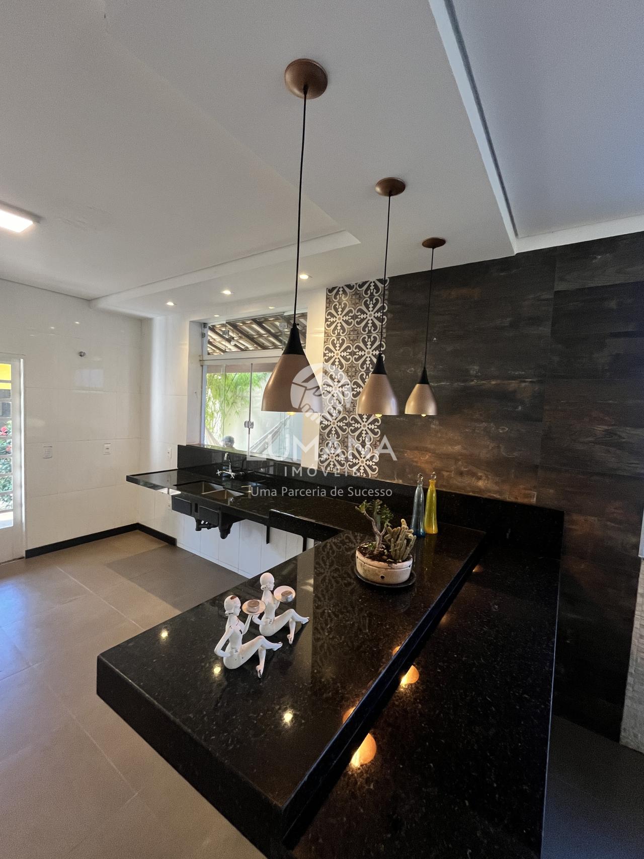 Confortável casa com acabamento moderno, piso em porcelanato, todo teto rebaixado em gesso e com iluminação, decoração nas paredes, janelas em blindex e bancadas em granito.
